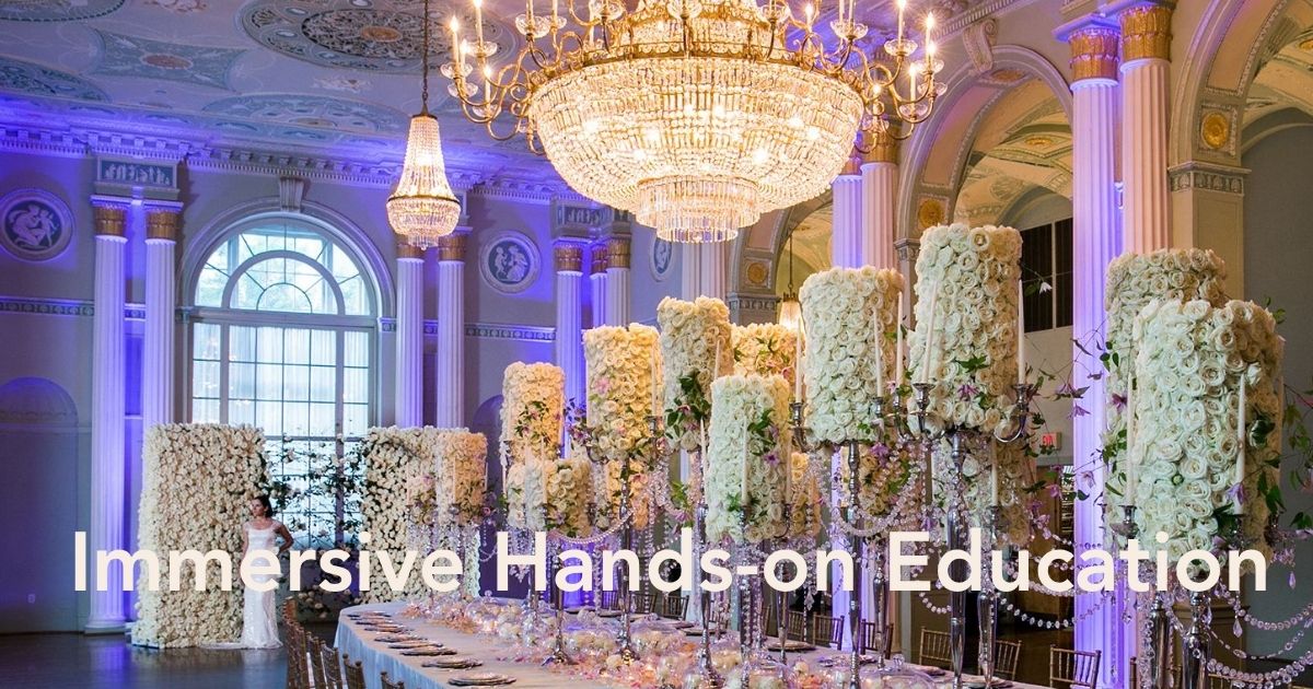This is not a traditional floral workshop where participants simply watch a demonstration and go home with notes. EMC positions this experience as immersive, hands-on education inside a real event environment. That means participants are not learning in theory alone. They are stepping directly into the creative process, seeing how large-scale floral design is developed, organized, and executed in real time.