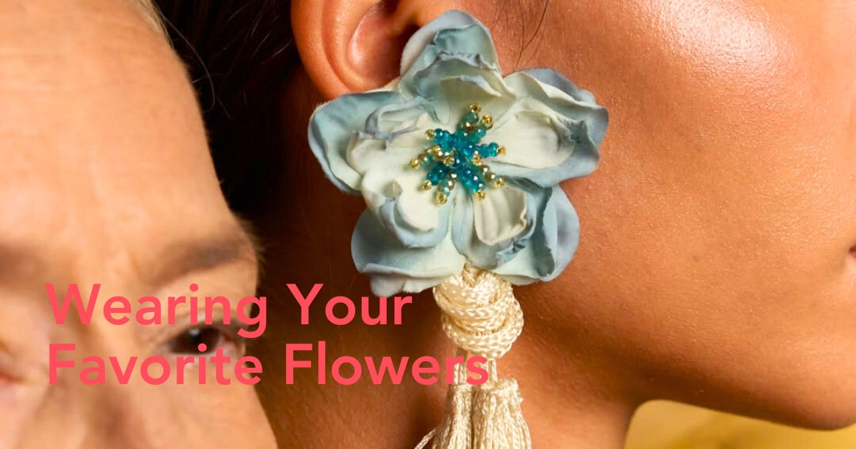 Loreta's accessories translate into floral inspiration. The firm uses traditional Colombian embroidery and handicraft skills to create earrings, necklaces, bracelets, and clutches inspired by gardens, flowers, and natural forms, including pieces fashioned after orchids and other flowers.