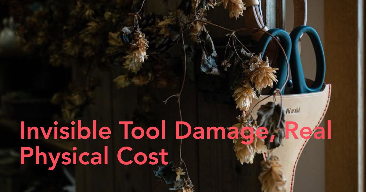 Tools rarely fail in dramatic ways. They fade. Slowly. Annoyingly. Sap polymerizes, moisture creeps, micro-fractures widen. A pruner that still "works" can already demand 10-30% more cutting force before you consciously register a problem, and that extra force goes straight into your wrist and shoulder.