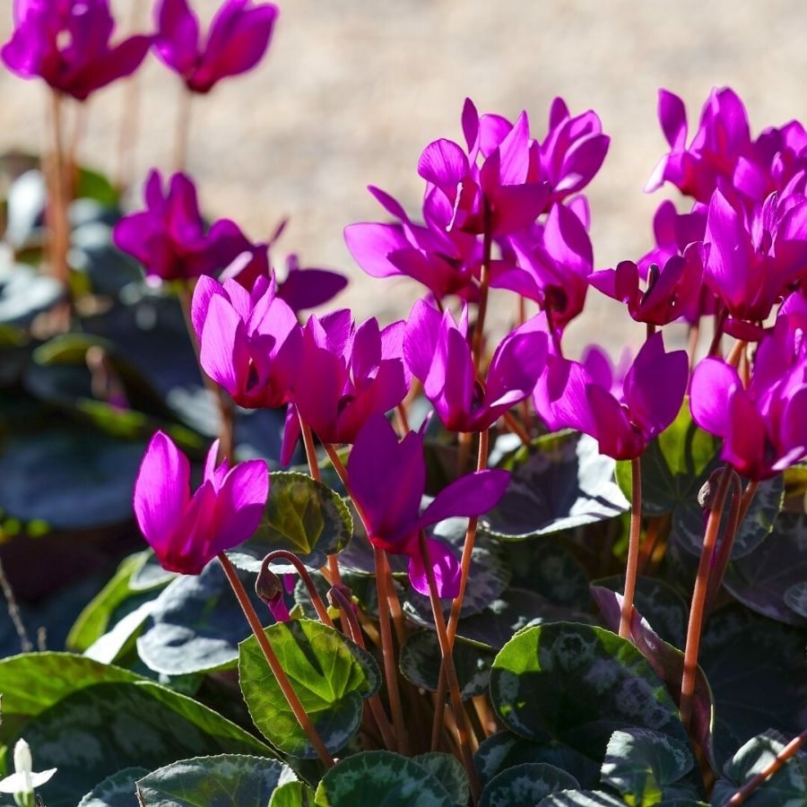 But Elixia® doesn’t stop at beauty and aroma. This cyclamen was bred for outdoor life. It performs well in gardens, thriving in beds, containers, and landscape settings, with strong plant volume, dense evergreen foliage, and reliable performance in shade or partial shade. Its perennial habit and frost tolerance (down to approximately -10°C) redefine cyclamen not as a short-lived seasonal accent, but as a long-term garden companion.