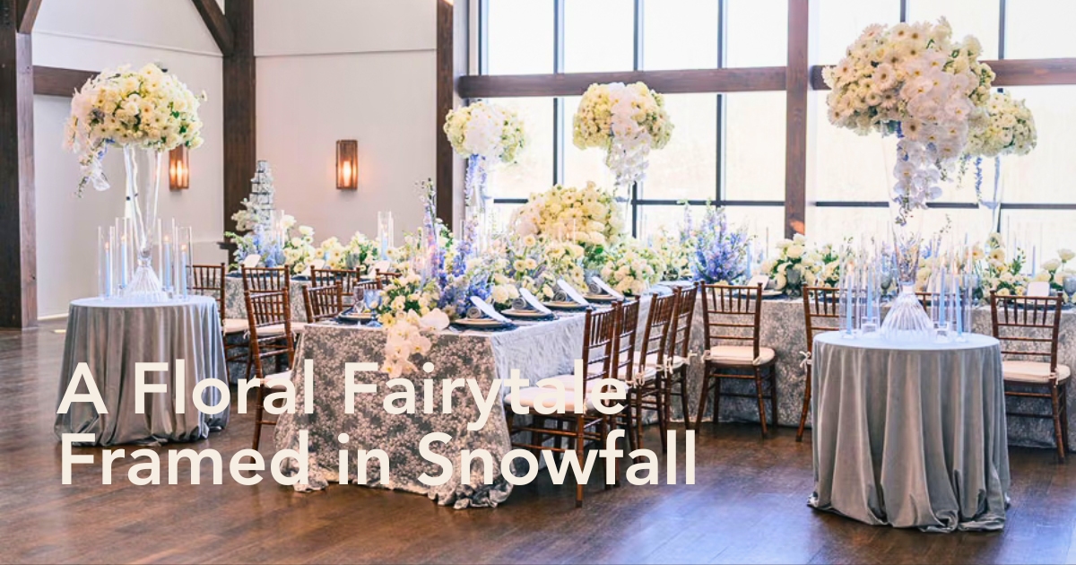 “The fluffy, romantic texture of the florals against the snowy backdrop outside made the entire installation feel seamless with the landscape, as if the storm itself had inspired the design.”