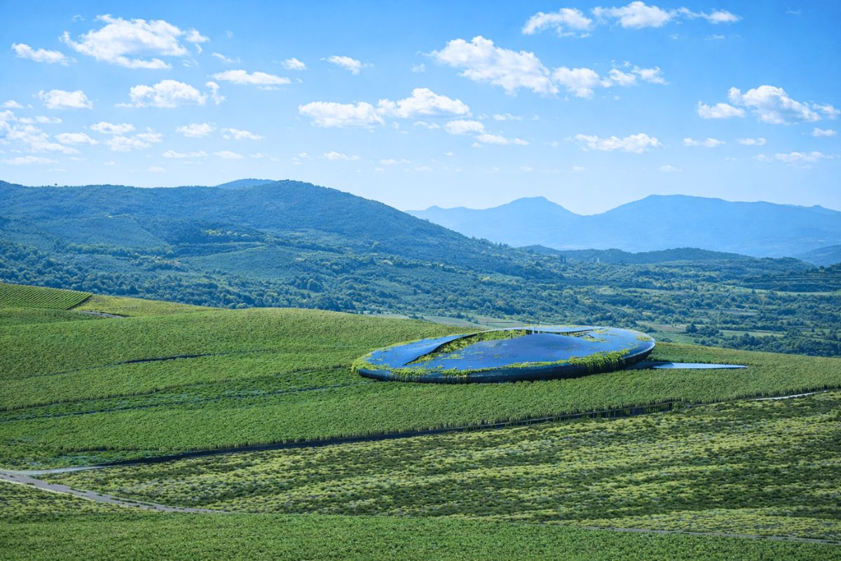 Among the vineyards of Nemea in the Peloponnese, Greece, 314 Architecture Studio designs a winery that takes the form of a circular structure partially embedded within the terrain, titled Metamorphosis. The project, whose planted roof extends to the surrounding vineyards on its surface, reads from afar almost like a geological formation. Take a closer look at this incredible project existing in pure Greek nature.