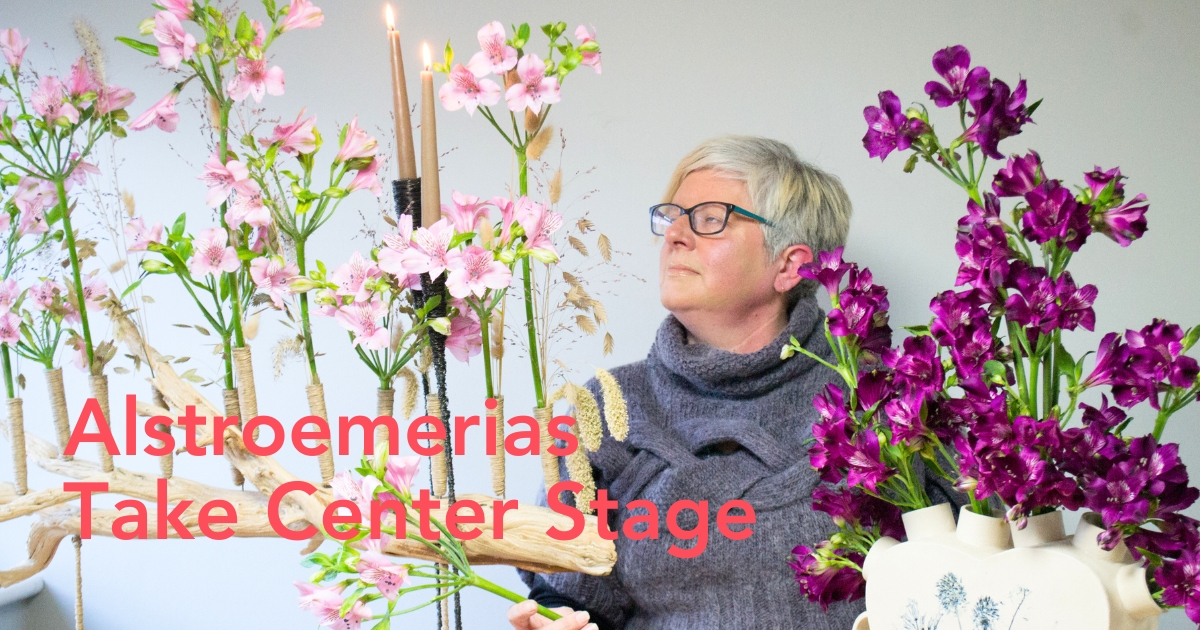 Check out the four designs that I have created with three of these wonderful flower varieties from Miss Alstroemeria, the brand by grower Tesselaar Alstroemeria.