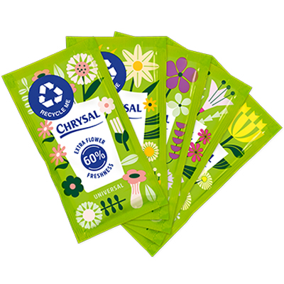 Chrysal Recyclable Sachet is made from fully recyclable plastic and contributes to a circular economy. Flowers and buds open more beautifully, it mixes easily and clearly in water, and is odorless, provides all the necessary ingredients for the full development of buds and blooms. Accurate dosing is essential for maximum satisfaction. We recommend that you provide the right care tips to your customers. We have care tips materials available for you. Add several packs of flower food for larger vases and for topping up the solution. Watch this 1-minute timelapse video about the compostable sachet.