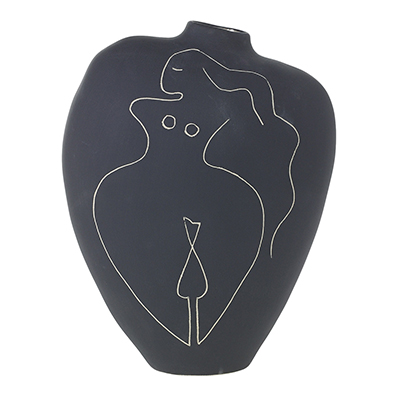 An exclusive AD Design from Artist Jessica Hiemstra, the Shero vase is first glazed and then the women's figure is hand-carved with a knife, with a unique matte-black finish. Size: 4.75"x 10"