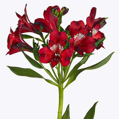 Alstroemeria Nirvana is a strong red alstro with a speckled dark pink heart. Make a dramatic statement in your DIY floral arrangements with these red alstroemeria flowers. The alstroemeria has long been a symbol of friendship and wealth, and these trumpet-shaped flowers are customer favorites because of their long vase life and great ability to fill any bouquet. Let them open fully so that you can add them to bouquets and centerpieces for beautiful bursts of color!