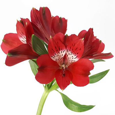 Alstroemeria Noize is characterized by its high branch weight, which means you get sturdy, full branches. The bright red color of Noize combines well with other red flowers, but this alstro also comes into its own as a mono bunch.