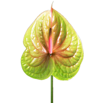 Anthurium Pistache is a sturdy flower with an excellent shelf life of 30 days. Pistache often shows a fantastic pink with green spadix. The flower can reach a width of 18cms.