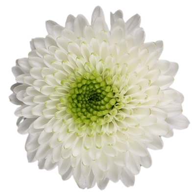 Chrysanthemum Santini Maverick White is a stunning white pompon santini with a fresh green center. It is a very long-lasting and absolutely perfect flower to make special arrangements.