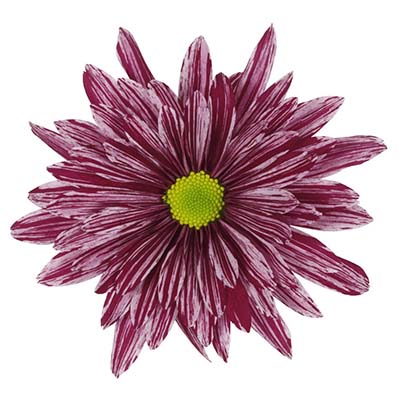 Chrysanthemum Stellini is a bicolored striped purple-pink spray chrysanthemum. This appearance makes it stand out from the solid-colored chrysants.