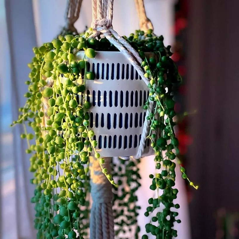 Outdoors, the String of Pearls plant thrives in tropical and subtropical climates, cascading beautifully from hanging pots or spilling over the edges of rock walls and containers. Its adaptability to different growing conditions – whether in partial shade or full sun – makes it a versatile plant for adding greenery and visual interest to gardens and landscapes. Its tolerance to heat and drought further contributes to its popularity in warmer regions.