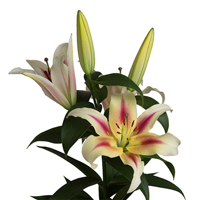 The beautiful Lily OT Nymph attracts attention because of the special two colors, light yellow with pink.