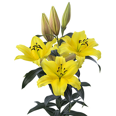 With its bright yellow color, this lily brings an explosion of sunshine to any bouquet, making it shine and brighten up your space. A perfect choice for those looking for something special.