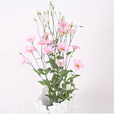 Lisianthus Botanic Pink fits perfectly in the botanical and bohemian styles. This is not a lisianthus with full large double flowers and thick stems, but a somewhat wild full branch, profusely flowering with many fine single flowers and wispy stems, as if you picked them straight from your own backyard.