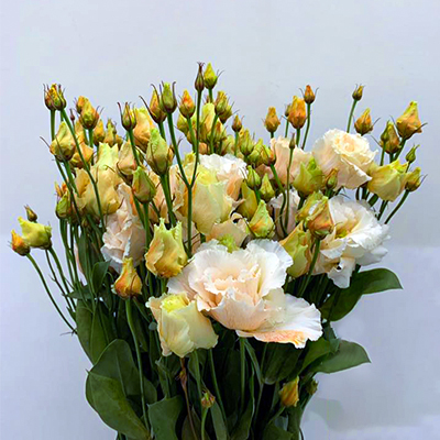 Heavenly is a series of dyed lisianthus. This one is dyed in the color peach. The beautiful focal flower starts out with soft, lime green buds, but opens into cup-shaped flowers in whites, and subtle nuances of its dyed color.
