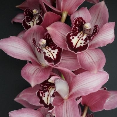 Cymbidium Kensi is large-flowered cymbidium in bright pink and has a unique dark lip, which creates a beautiful contrast in the flower. The Kensi is a very sturdy branch with many flowers and is available from weeks 39 to 44. You can leave the cymbidium in the vase for up to three weeks.