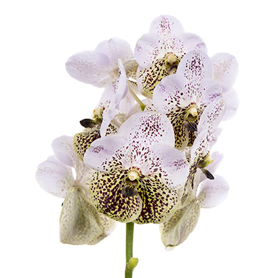 An interesting mix of the lightest shade of lavender that gradually fades into soft yellow, interspersed with lovely burgundy spotting. Just imagine the abundance of options for tropical arrangements you can create with this flower!