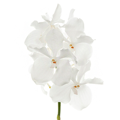 Not surprisingly, the Vanda Kanchana Ansu No. 1 is the Chanel No. 5 among Vanda orchids. This pure white beauty is long-lasting and has a year-round availability.