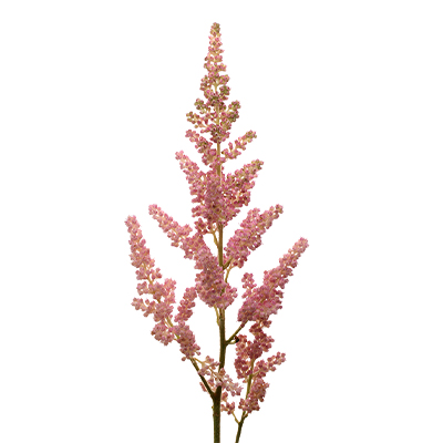 The flower panicles of Astilbe consist of hundreds of compact, smaller flowers that tower high above the leaves. The soft pink Vision Inferno does well in romantic bouquets.