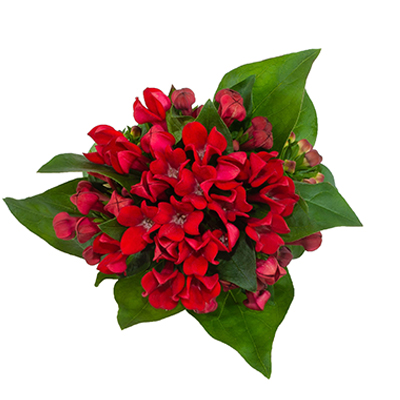 Bouvardia Red Winter is an exceptionally strong bouvardia that has a beautiful deep red color. This single-flowered bouvardia has a flatter flower head, beautiful dark leaves, and a ditto stem.