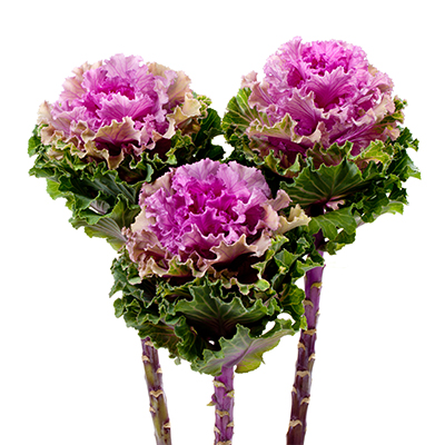 Brassica Oleracea Empire Akilina is a member of the Brassica Empire Series. The flower has dark pink leaves shifting to big green outer leaves. Brassica Empire series is the next generation of high-quality ornamental cabbages. Extensive breeding efforts have resulted in a brassica series with and an extraordinary appearance, long stems of at least 80 cm, disease resistance, and a great reduction of the typical brassica odor. The series consists of 16 strong varieties with flat or fringed leaves in a spectrum of ivory, green, pink, and purple color combinations. Check out all brassica Empire varieties on Evanthia.