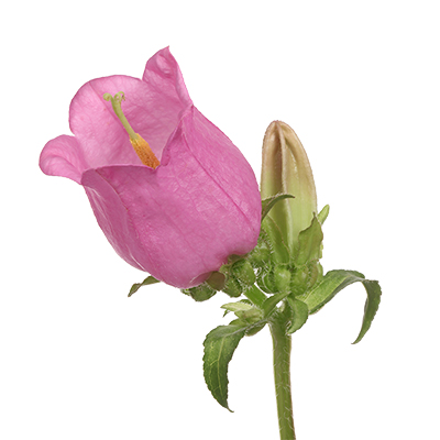 Very floriferous, Campanula Champion Pink, is an upright biennial with a profusion of large, broadly bell-shaped, pink flowers. The flowers are borne atop long leafy stems above a basal rosette of lance-shaped, dark green leaves.