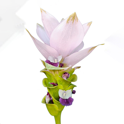 The Curcuma Siam Splendid variety is very different from the rest of the curcuma family given its impressive size, and delicate color, adding tints of graceful pink color to any floral design.