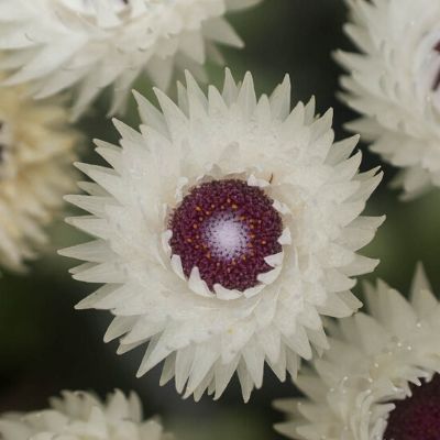 Dried flowers of the genus Helichrysum are said to last forever, hence they are also referred to as everlastings, immortals or sewejaartjies. There are about 600 species worldwide, and more than 240 occur in southern Africa. Growing up to 1m tall, this compact, much-branched shrublet has soft woody stems and branches and a thick covering of grey-woolly hairs that feels like felt. The densely crowded leaves are erect and narrowly oblong, usually about 5-8mm wide. Towards the branch tips, the leaves give way to narrow, dry bracts and finally to a solitary, conical flowerhead about 20mm wide. The Afrikaans common name for ‘everlasting flowers’ is ‘sewejaartjies’ which has two believed origins; the first referring to the fact that the cut flowers will last for a long time, and the other referring to the plants’ short life-span in the veld, known for disappearing after just seven years.