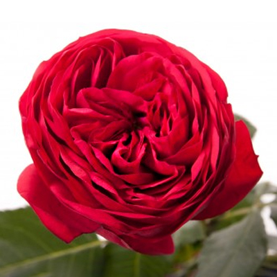 A classic red garden rose with a perfectly spherical shape.