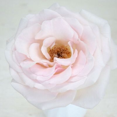 Prince Jardinier garden roses are very light pink and ultra-romantic scented roses that can open up to an almost saucer-shaped bloom. These are very open, soft, and swirly roses and petals open wide enough to expose the center pollen. The rose Prince Jardinier has the swirled velvet petal structure typical of garden roses as well as a particularly romantic feel.