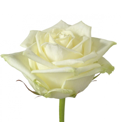 White Naomi! is a top-quality luxury rose with a long sturdy stem capped by a huge flowerhead. The petal count is amazing, allowing the rose to unfurl beautifully into a classic shape that is almost symmetrical. The white color sits gorgeously amid an abundance of contrasting deep-green leaves.