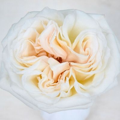 Rose White O’Hara begins its life as a small blossom with a little green on its outside petals and a little pink on the inside. Once this rose has opened all the way, it presents a perfect, creamy white rose with just a hint of blush ivory deep within its quartered center petals.