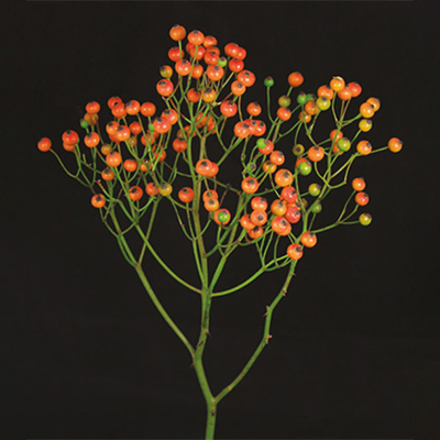 Small decorative orange berries on a sturdy stem that will fit into a wide array of autumn designs.