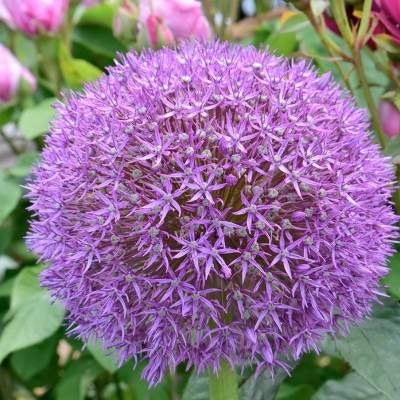 Allium 'Pinball Wizard' has a large spherical flower (diameter 15 cm) that consists of countless small flowers. The stem of the 'Pinball Wizard' is sturdy and about one meter high. The ornamental onion 'Pinball Wizard' flowers relatively early for an ornamental onion; they bloom in late spring from late May.