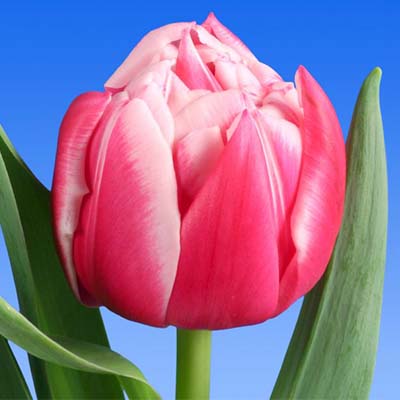 Columbus tulips are fascinating peony-like double-flowered tulips. The light raspberry color in combination with the white edges makes this tulip a popular cut flower for any bouquet.