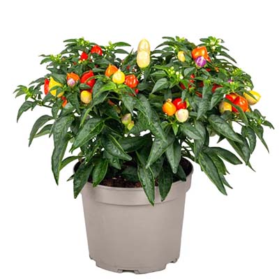 The special thing about Capsicum Autumn Daylight is the berries that change color from purple to yellow to orange and then to red. The plants are suitable for both indoors and outdoors.