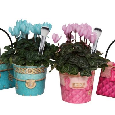 Cyclamen Make-Upz® Uno is uniquely decorated. Available in colors: blue, green, orange, pink, purple and yellow. The Make-Upz® cyclamen are decorated very carefully and locally, making it a beautiful whole. The cyclamen has strong properties such as the rich uniform flowering, the round plant structure and the central flowering.