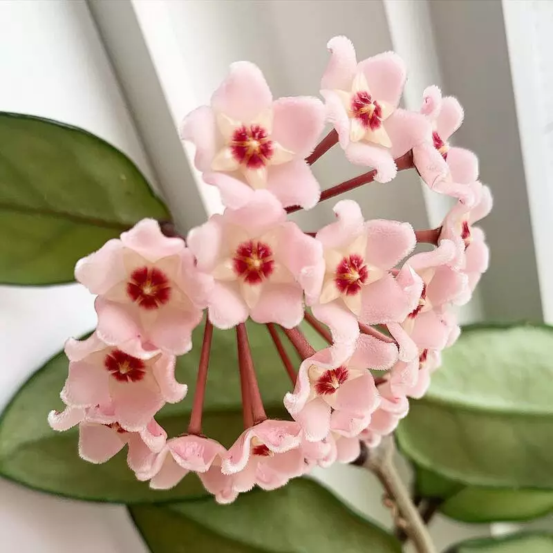 Hoya carnosa is a species of perennial plants in the family Apocynaceae that originated from India and Southeast Asia. This waxy-leaved vining shrub is a low maintenance plant that will flower in the proper conditions. Hoya carnosa is known for its fragrant flowers that bloom in clusters of pink, white, and yellowish green hues resembling small, star-shaped flowers. It has a long history as a medicinal plant for different ailments in the countries of its origin and is now popular in parts of Europe and North America for its attractiveness and equally for its air-purifying qualities.