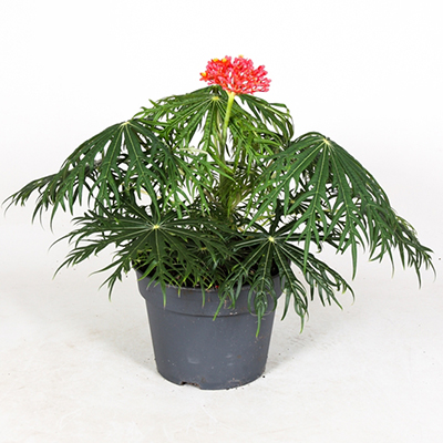 Jatropha Multifada is also known as 'coral plant', because of its significant resemblance to the corals that grow on the ocean's reefs. The big deep cut leaves are dark green on the top side and greyish on the bottom.