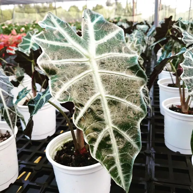 Originating from South and Central America, Alocasia is an evergreen plant that belongs to the Araceae family. The plant is known for its stunning foliage and bright white veins, which make it stand out from other plants. The plant can grow up to two feet tall, with leaves up to 2-3 feet long. It thrives in warm, humid climates and is adored by individuals all over the world.