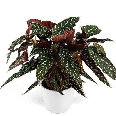 Begonia Spotlight Green is a well-branching dotted Begonia maculata variety. It is also called Polka Dot Begonia because of its color and polka dot pattern, making it a hip plant for young and old. It fits nicely in both bigger and smaller spaces.