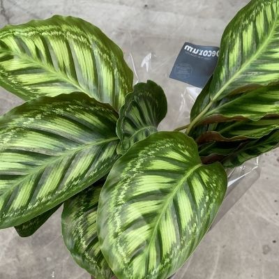 Calathea are wonderful, highly decorative foliage plants with air-purifying qualities too. There are many species available all of which need a little care and attention for them to appear at their best. Calathea is closely related to the Maranta (Prayer Plant) and both are known and loved for their impressive, ornamental foliage, which opens with the morning light and closes again at night time. Calathea originate from the tropical Americas. Think warm and humid, with bright diffused sunlight filtering through the canopy and you have a good idea of the sort of environment in which Calathea will thrive best. Replicate this as far as you can in your home and you will be rewarded with a magnificent plant. The superb markings on the leaves are the main focal point. Simply house in a plain ceramic pot and let the plant do the rest to create an eye-catching display!