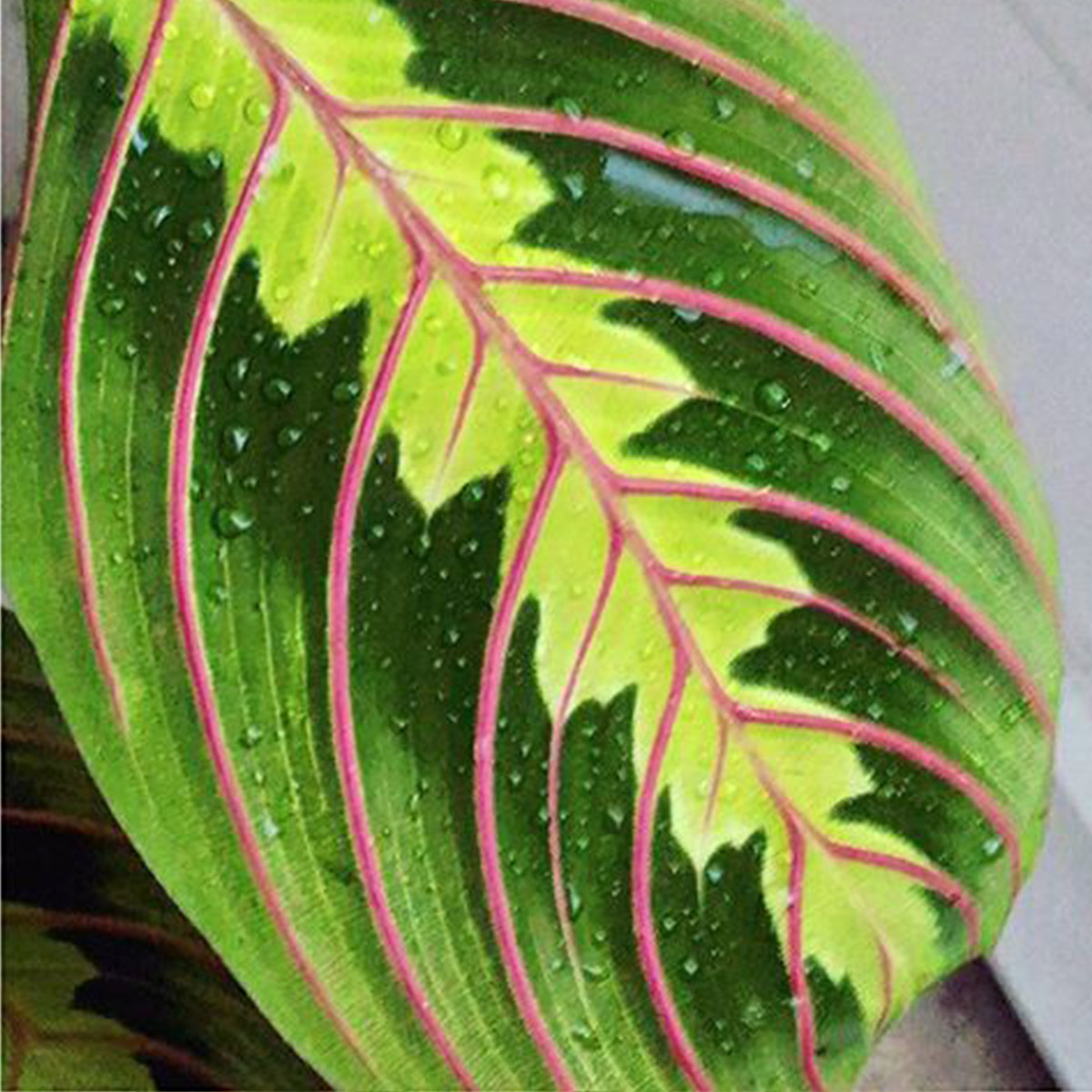 The Maranta is a special colored houseplant that is part of the Marantaceae family. This family is originally from South America and consists of the Calathea, Ctenanthe, and Stromanthe. Each Maranta species has a different leaf pattern. You can recognize the popular Maranta tricolor fascinator by its dark green leaves with deep pink veins, which have a wine-red underside.