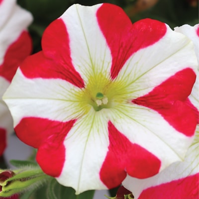 This gorgeous petunia boasts regal red and white blooms, with five perfect red hearts