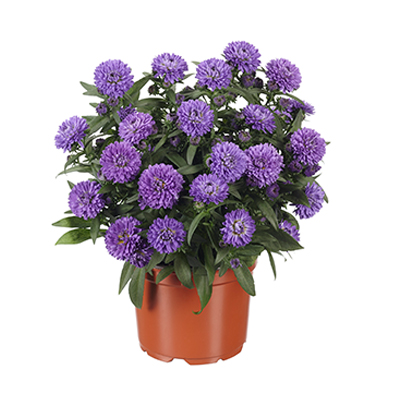 Aster Showmakers® Blue Bayou is the blue-purple variety in the Aster Showmakers series. With a name like 'Showmakers'®, you’d better have something to show for it. If you ask us, this double-flowered aster series really steals the show. No wonder there’s a peacock on its logo. Its packed-with-petals flowers in blues and violets make it a real eye-catcher. On its own in a large pot for the terrace or in combination with other plants. The 'Showmakers'® is a real diva. With the proper attention and care, we can guarantee you a plant with a beautiful, long-lasting flower display: a plant that meets the high standards for quality that we at Royal Van Zanten set for our products. Showmakers® Aster Care Tips: • They like a place in the sun with a little shade now and then. In a really sunny position, however, they will need a bit more water than when placed in the shade. So, in this case, water them regularly. • It’s important to avoid that water remains in the pot, since they really dislike having ‘wet feet’. • If you want to enjoy your plant even longer and see even more flowers appear, remove faded flowers on a regular basis.