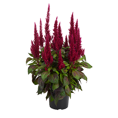 Celosia XXL Purple is a purple-colored blooming garden plant. Celosia XXL: bigger is better! Create the ultimate holiday feeling in your own garden during late summer and autumn with the new XXL garden celosia! The XXL is available in three beautiful warm colors: purple, orange, and red. The large striking plumes of this plant are real eye-catchers for in your garden or in a nice large pot on your terrace. The celosia XXL has a great firm leaf quality and the purple variety has a trendy marble pattern on his leaves. Besides this, their shelf life is excellent and the plant has a long flowering period. The celosia is known for its convenient character and is really a plant that falls into the category of "easy-care".