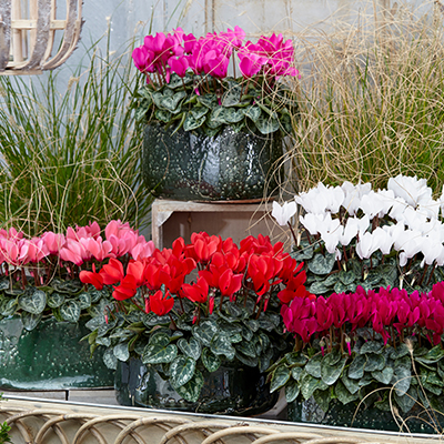 A joyful combination of mini cyclamen for flowering in summer and autumn