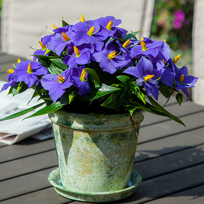 Exacum Affine Sapphire, commonly called Persian violet, is a 6 to 12-inch tall annual that is popular for its beautiful purple flowers and shiny green foliage. The tiny leaves of this rounded plant are ovate in shape and densely cover the stems. Lovely purple flowers with bright yellow pollen-masses in their centers appear in the spring and summer. These fragrant flowers will densely clothe this plant if it is grown under the proper cultural conditions.