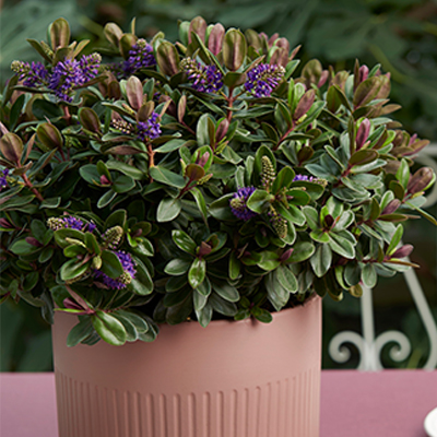 After years of dedicated breeding, Addenda® has succeeded in developing a Hebe with unique shiny leaves in a deep shade of wine red. This inspired the name; the French vin and the Italian vino. This well-branching and compact Hebe personifies luxury and brings a flavor of the Mediterranean to your garden or balcony with its burgundy-red foliage and plumes of purple flowers: la dolce Vita!