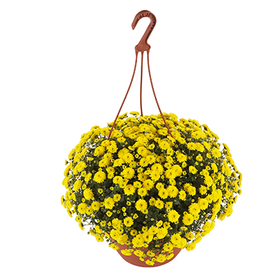 Multiflora Skyfall® Hanging Basket Yellow is a yellow variety in the Multiflora Skyfall series. Multiflora is the same as a garden mum. It is a blooming garden plant. When the spring flowers begin to fade, Skyfall is the perfect answer to making your garden, even more, inviting from early summer to late autumn. This unique garden Multiflora gives you flowers for weeks at a time. Exceptional genetics provide a profusion of flowers Skyfall is truly unique: unlike the usual garden chrysanthemums, Skyfall plants have a rather flat, spreading habit: they grow horizontally instead of vertically. The exceptional genetics used to create this special garden Multiflora mean that Skyfall covers no less than 50% of the pot with its flowers. And this is what makes it so perfect for hanging pots. ‘Color your garden in the sky’ This abundance of flowers gives it a wide range of uses, from patios or balconies to wall hangers. Availability: Summer, Autumn Key Features of the Skyfall® Series Are: • All colors have an equal growth cycle which provides you with uniform plants that bloom simultaneously. • Unique trailing Multiflora. • Exceptional genetics provide a profusion of flowers. • Suitable for regular pots, hanging baskets, flower bags, and wall hangers. • Comes with a sleeve with a luxurious appearance, clear labels, and the option for buyers to personalize.